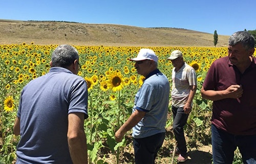 Kırıkkale Tarım ve Orman İl Müdürü Sırrı Yılmaz, Keskin İlçesi Seyifli Köyünde Ayçiçeği ekim alanlarında çayır tırtıl zararlısı kontrollerine katılarak üreticilerimize çayır tırtıl zararlısı hakkında bilgi vererek uyarılarda bulundu. İl Müdürü Sırrı Yılmaz; zararlıya karşı mücadele edilmemesi durumunda zararlının yaprak, tomurcuk ve çiçek yapraklarını yiyerek verim kaybına sebep olduğunu ve ekonomik zararlara yol açtığını vurguladı. Söz konusu zararlıyla etkin mücadelenin zaman kaybetmeden yapılması için Çiftçilerin yağlık ayçiçeği ekim yerlerinde, çayır tırtıl zararlısı ile karşılaşıldığında en yakın İl ve İlçe Müdürlüklerimize başvurmaları gerektiğini belirtti.