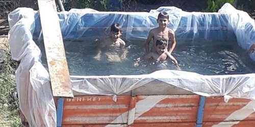 Kırıkkale´nin Bahşili ilçesinde, çiftçi Hidayet Özbek (61), traktörünün römorkunu suyla doldurarak, sıcaktan bunalan torunlarına havuz yaptı. Torunlarının ırmağa girmesini istemeyen Özbek, kendisine ait traktörün römorkunu havuza çevirdi. Özbek´in 2 torunu ve komşularının çocuğu, römorkta yüzerek hem serinledi hem de eğlendi. Özbek, "Çocukken babamız bizi yüzmemiz için ırmağa götürürdü. Fakat o zaman akıntı pek yoktu, şimdi akıntı çok ve tehlikeli. Ben torunlarımı ırmağa götürmeye cesaret edemedim. Böylece gözümüzün önünde yüzüyorlar. Onları mutlu etmişsek ne mutlu bana" dedi.