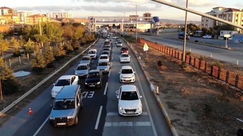 Ulaşımda 43 ilin geçiş güzergahındaki Kırıkkale'de yer alan kilit kavşakta, tampon tampona ilerleyen yoğun araç trafiği drone ile havadan görüntülendi.