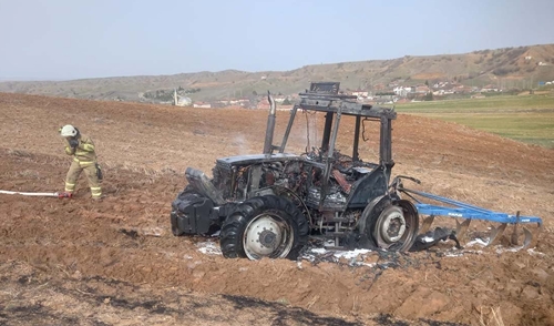 Kırıkkale'nin Balışeyh ilçesinde tarla süren çiftçinin traktörü alevlere teslim oldu. Edinilen bilgiye göre, Balışeyh ilçesine bağlı Işıklar köyünde Bülent Z. tarlasını sürerken traktörü aniden alev aldı. Kısa sürede büyüyen alevler, traktörün tamamını kapladı. 112 Acil Çağrı Merkezi'ne yapılan ihbar üzerine olay yerine itfaiye ekipleri sevk edildi. Ekipler yangını kontrol altına alırken, traktör kullanılamaz hale geldi.