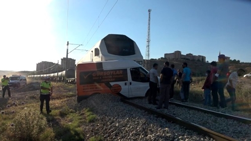 Tren minibüse çarptı