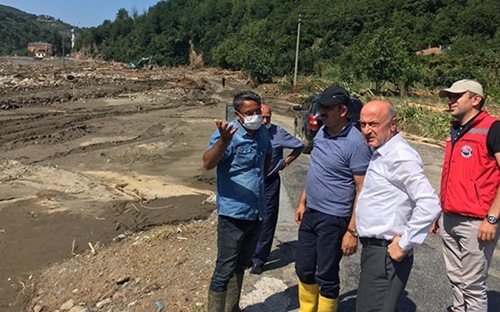 Sel felaketinin yaşandığı Kastamonu’nun Bozkurt ilçesini ziyaret eden Kırıkkale TSO Yönetim Kurulu Başkanı Ahmet Varlı ve Başkan Yardımcısı Osman Rasim Ölmez, bölgedeki çalışmaların koordinasyonundan sorumlu olan Kırıkkale Valisi Yunus Sezer ile birlikte selden zarar gören sokak ve caddelerde incelemelerde bulundu.