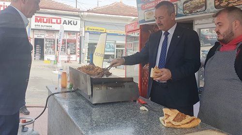 Ulusoy, sanayi esnaf ziyaretlerinin öğle molasında elleriyle köfte pişirip ikramda bulundu. Kırıkkale Belediye Başkan adayı Harun Ulusoy, seçim çalışmalarını aralıksız sürdürüyor. Mahalle ve ev toplantılarının yanı sıra esnaf ziyaretlerine devam eden Ulusoy, önceki gün sanayi esnafını ziyaret etti. Beraberindeki MHP heyetiyle sanayi esnaflarının sorun ve taleplerini dinleyerek sorunlara çözüm üreten Ulusoy, seçim çalışmasının öğle saatlerinde sanayide hizmet veren Bülbüller lokantasında mola verdi. Burada maşayı eline alan Ulusoy, bir elinde ekmekle köfte pişirip ikramda bulundu.