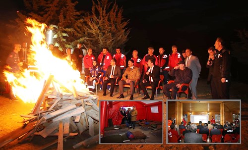 Bahşılı İlçesi mesire alanında düzenlenen kamp ziyaretinde; Vali Yardımcısı Mehmet Miraç Topaloğlu, Bahşılı Kaymakam Vekili Ali Can Uludağ, İl Emniyet Müdürü Fahri Bulut, İl Jandarma Komutanı Kd.Alb.Barış Cücen , İl Sağlık Müdürü Dr. Murat Ağırtaş ve İl Afet ve Acil Durum Müdürü Mahmut Coşkun’da yer aldı. İl Sağlık Müdürlüğü bünyesinde, gönüllü sağlık personelinden oluşan Ulusal Medikal Kurtarma Ekibinin (UMKE) 2022 yılı faaliyet planı kapsamında 11-13 Ekim 2022 tarihleri arasında gerçekleştirilecek olan çalışmaları hakkında Vali Tekbıyıkoğlu’na, brifing sunuldu. Vali Tekbıyıkoğlu'na ilgili personeller tarafından 2022 yılında Kırıkkale envanterine giren Ani Müdahale Ünitesi Aracı, tıbbi cihazlar ve personel barınma ile aynı zamanda sahra hastanesi olarak kullanılan çadırlar hakkında bilgiler verildi. UMKE Ekibi ile bir araya gelen ve kamp ateşini yakan Vali Tekbıyıkoğlu, UMKE Ekiplerine çalışmalarında başarılar diledi.
