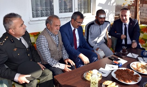 Sezer, Saygılı ve beraberindeki bazı protokol üyeleri, 27 Ekim'de Rasulayn bölgesinde YPG/PKK'lı teröristlerce düzenlenen havan topu saldırısı sonucu yaralanan Kanmaz ile babası Hacı Kanmaz'ı Çalılıöz Mahallesi'ndeki evlerinde ziyaret ederek, geçmiş olsun dileğinde bulundu. Vali Sezer, burada yaptığı konuşmada, Türk askeriyle gurur duyduklarını söyledi. Türk ordusunun bu milletin göğsünü kabarttığını belirten Sezer, "Allah eksikliğinizi vermesin, ayağınıza taş değdirmesin. Bütün dualarımız, yüreğimiz, her şeyimiz oradaki kardeşlerimizle beraber. Barış Pınarı Harekatı'nda bir şehidimiz Piyade Üsteğmen Çelebi Bozbıyık ve Kanmaz'la birlikte Uzman Çavuş Yasin Koyuncu iki yaralımız, gazimiz var." diye konuştu.