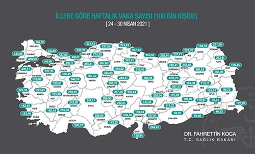 Sağlık Bakanı Fahrettin Koca bu haftanın vaka sayılarını açıkladı. Geçtiğimiz hafta 100 binde 444.92 olan vaka sayısı bu hafta tedbirlerin etkisi ile düşüş gösterdi ve 345.89’a indi.