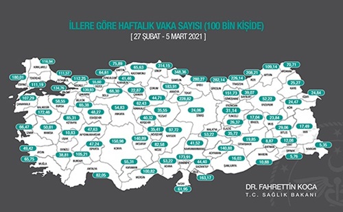 Sağlık Bakanı Fahrettin Koca yeni haftanın vaka tablosunu açıkladı. Bir önce ki hafta 100 bin de 51.43 vaka sayısı olan Kırıkkale de vaka sayısı bu hafta 62.43’e yükseldi.