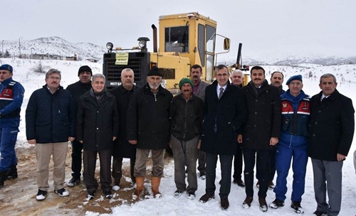 Dinek Dağı eteklerinin en fazla yağış alan bölgelerden biri olduğunu ifade eden Sezer, şöyle konuştu: "Arkadaşlarımız dün gece saat 03.00'de yol açma çalışmalarına başladı. Çok büyük bir fedakarlıkla güzel bir çalışma yapıyorlar. Şehir merkezinde de belediyemiz büyük bir çalışma yapıyor. Şu an itibariyle kapalı köy yolumuz bulunmamaktadır. Gelen kara hazırlıklı yakalandık. Güzel bir hazırlık çalışması yapmıştık. Bundan sonrada vatandaşlarımızdan gelen talepleri karşılayacak şekilde tedbirlerimizi aldık. Çalışmalarımız 24 saat boyunca aralıksız olarak devam edecek. Ekiplerimiz sürekli sahada olacaklar. Kar yağışı boyunca grup köylerimiz öncelikli olmak üzere tüm köy yollarımızda ekiplerimiz, araçlarımız arazide olacak." Vali Sezer, burada ekiplere tatlı ikram etti. Mehmetbeyobası Köyü Muhtarı Selim Durmaz'ın evine de misafir olan Sezer, köyün sorunları hakkında bilgi aldı. Vali Sezer'in incelemelerinde Balışeyh Kaymakam Vekili Mücahit Öztürk'te hazır bulundu.