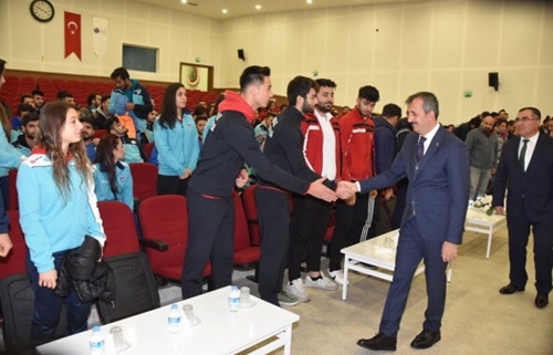 Çocuklarımızı, gençlerimizi sizin gibi rol modeller vasıtasıyla hem sağlıklı bir yaşama spor yaparak yönlendirmemiz gerekiyor, hem de geleceklerini daha sağlam temeller üzerine inşa etmelerini sağlayacak mekanizmaları kurmamız gerekiyor. Üniversitelerin bir araya gelmesi, gençlerin birbirleriyle tanışması, üniversitelerin kaynaşması dolayısıyla şehirlerin kaynaşması gerçekten inanılmaz bir etkinlik. Bugün hem üniversiteler arası, hem de iller arası bu birlikteliği sergileyeceğiniz için teşekkürlerimi sunuyorum. Tekrar ilimize hoş geldiniz." dedi. Toplantıya, Kırıkkale Üniversitesi Rektör Yardımcısı Prof.Dr.Mehmet Başalan, Spor Bölümü Fakültesi Dekanı Prof. Dr. Ali Ahmet Doğan ve öğrenciler katıldı.
