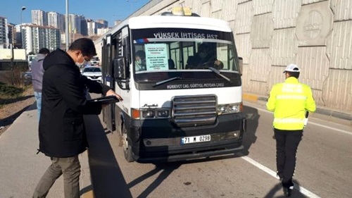 Kırıkkale'de korona virüs tedbirleri kapsamında toplu taşıma ve ticari araçlarda denetim yapıldı.