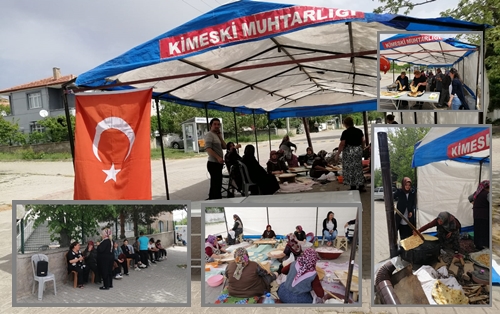 Kimeski Mahallesi’nde Cuma günü Muhtar Hatuce Altun’un girişimi ile yağmur duası programı düzenlendi. Programda Muhtar Hatice Altun ve mahalle sakini kadınlar yağmur duasına katılanlara kendi elleriyle yaptıkları gözlemeleri ikram ettiler. Mahalleye kadın eli değdiğini gösteren görüntülerin yaşandığı programda hem yağmur için dua edildi ve hem de birlik ve beraberlik görüntüsü sergilendi. Programa katılanlar Cuma namazından sonra yağmur duasına iştirak ederken, gözleme ikramları ile de öğlen yemeği yemiş oldular.