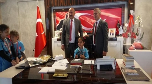 YahÅŸihan Belediye BaÅŸkanı Osman Türkyılmaz, 23 Nisan Ulusal Egemenlik ve Çocuk Bayramı’nın 99. Yıldönümü nedeniyle makam koltuÄŸunu YahÅŸihan Namık Kemal İlkokulu 2’nci sınıf öÄŸrencisi Zeynep Rana YeÅŸilyurt’a bıraktı. BaÅŸkan YeÅŸilyurt, “Bağımsızlığımızın, demokrasimizin ve Cumhuriyetimizin öncüsü ve güvencesi olan Türkiye Büyük Millet Meclisi’nin açılışının 99. Yıldönümünü ile Ulusal Egemenlik ve Çocuk Bayramı’nı kutlamanın sevincini ve gururunu yaşıyoruz.” ÅŸeklinde konuÅŸtu. YeÅŸilyurt, makama oturduktan sonra bazı birim müdürlerini çağırarak, talimatlar verdi.
