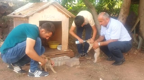 Kırıkkale'de çöp tenekesinin içine bırakılarak ölüme terk edilen yavru köpekleri tesadüfen gören Adem Alparslan çocuklarıyla birlikte evinin önünde yaptığı kulübede 8 yavru köpeğe gözü gibi bakıyor. Kırıkkale'nin Delice ilçesine bağlı Çerikli beldesinde otobüs şoförlüğü yapan Adem Alparslan, yoldan geçerken çöp tenekesinin içine bırakılarak ölüme terk edilen 8 yavru köpeği sahiplendi. Çocuklarıyla birlikte evinin bahçesine kulübe yapan Alparslan, her gün marketten süt alarak yavru köpekleri biberonla besliyor. Köpekleri yoldan geçerken tesadüfen çöp kutusunun içinde bulduğunu ifade eden Adem Alparslan, "Vicdanım razı gelmedi o yüzden 9 taneydi 1 tanesi ölmüş, 1 tanesini aldım gömdüm. 8 tanesini getirdim" dedi.