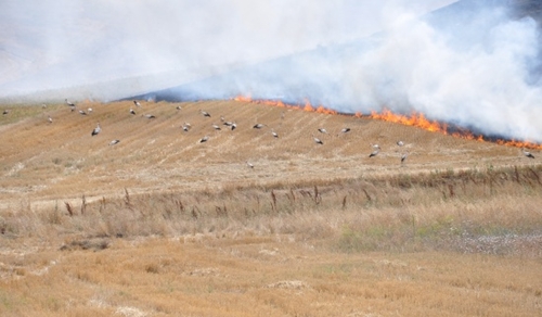 İlçeye bağlı Yeniyapan ve Gülkonak köyü arasında hasadı yapılmış buğday tarlalarında, henüz belirlenemeyen nedenle yangın çıktı. Rüzgarın da etkisiyle kısa sürede büyüyen yangın, çevredeki tarlalara da sıçradı. İhbar üzerine olay yerine gelen itfaiye ekipleri, yangını vatandaşların da yardımıyla 3 saatte kontrol altına alarak, söndürdü. Yangında, hasat yapılmış 10 bin dönüm arazideki sap ve samanlar kül oldu. Öte yandan leyleklerin yangın sırasında alevlerden kaçan hayvanları avladığı görüldü.