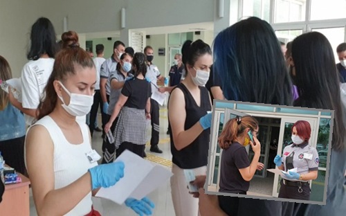Sınava giriş binalarındaki kontrol noktalarında adaylar önce el dezenfaktanlarla ellerini dezenfekte ederek sırayla içeriye alındı. Adaylar kontrol noktalarında titizlikle arandı ve belgeleri kontrol edildi. Yanlarında getirmiş oldukları suların poşetleri dahi söküldü. Bina girişinde bulunan görevliler sık sık sınava başlama süresinin azaldığını ve kapıların kapanacağı uyarısında bulundu. Görevliler ayrıca sınava giren adayların rahatsız olmamaları için bahçede bulunan velileri de binadan uzaklaşmaları konusunda uyarılarda bulundu. Adayların aileleri sınav süresince kendileri için müsaade edilen yerlerde çocuklarını bekledi. Bazı aileler çimenler üzerine uzanıp yatarken, bazı aileler dua edip Kur'an-ı Kerim okudu, bazıları ise kahvaltı yaparak çayla simit yedi.