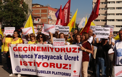 Kendine ‘sendika´ diyen kimi yapılar ise içine sürüklendiğimiz derin yoksulluğa çözüm olarak Eşel Mobil Sistemini talep etmenin ötesine geçemiyorlar. Oysa yıllardır sahnelen oyun apaçık ortadadır. Maaş artışlarımızı düşük tutmak için resmi enflasyon düşük gösterildi. Bunun için yapılan hileler özellikle enflasyon farkı alacağımız aylar yaklaştıkça daha da artmıştır. Memur Sen ve bağlı sendikaları yıllardır masa başında bu sahte rakamların altına imza atmışlar, üstelik kamu emekçilerinin temel hiçbir sorununu çözmeyen mutabakatları “tarihi başarı” diyerek övmüşlerdir. Sonuçta yıllardır sahte resmi enflasyon rakamlarına göre yapılan artışlar hepimizin reel gelirini buharlaştırmış, maaşlarımız açlık sınırına yaklaşmıştır.