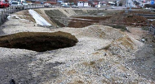Kırıkkale'de kanalizasyon hattında meydana gelen çökme nedeniyle Kırıkkale-Kayseri kara yolunda 5 metre derinliğinde 3 metre çapında göçük oluşurken, araç trafiği alternatif yollara yönlendirildi. Alınan bilgiye göre, Kırıkkale-Kayseri kara yolunun Bağdat Köprüsü mevkisinde kanalizasyon hattı çöktü. Kara yolunda 5 metre derinliğinde 3 metre çapında göçük meydana geldi. Vatandaşların ihbarı üzerine olay yerine giden polis ekipleri trafiği durdurdu. Kırıkkale Belediyesi ve Karayolları Genel Müdürlüğü ekipleri de duruma müdahale etti. Hattaki çökmenin 5 metre derinde olması üzerine ekipler kazı çalışması yaparken, başka göçükler oluşma ihtimaline karşı yol trafiğe kapatıldı. Trafik her iki yönde de alternatif yollardan sağlanıyor.
