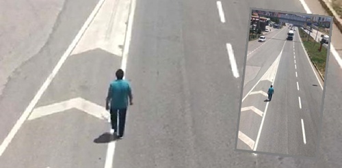 KIRIKKALE'de, trafiğin yoğun olduğu karayoluna çıkıp, araçlara aldırmadan yürüyen yaya, kameraya yansıdı. Olay, öğle saatlerinde Kırıkkale-Kayseri karayolunun Alpaslan Türkeş Bulvarı mevkiinde meydana geldi. İsmi henüz öğrenilemeyen vatandaş, yola çıkıp, üzerine gelen araçlara doğru yürümeye başladı. Karayolunda yürüyen kişiyi gören sürücüler şaşırdı. Yayaya çarpmamak için yavaşlayıp manevra yaparak yanından geçen sürücüler, yola devam etti. Hem kendi canını hem de sürücüleri tehlikeye sokan kişi, bir süre sonra yol kenarında bulunan başka bir kişi tarafından kenara çekildi.