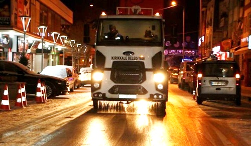 Kırıkkale'de yağan kar yerini dondurucu soğuk havaya bıraktı. Soğuk havayla birlikte yollarda oluşabilecek buzlanmaya karşı önlemlerini alan Kırıkkale Belediyesi, tuz serpme ve solüsyon dökme araçları ile yolları araç ve yaya trafiğine hazır hale getiriyor. Belediyeden yapılan açıklamada, "Belediyemize bağlı Fen İşleri ekipleri başta şehir merkezi olmak üzere yoğun buzlanmanın yaşandığı ana arterlerde tuzlama ve -40 dereceye kadar buzlanmayı önleyen solisyon çalışmalarını sürdürüyor" denildi.